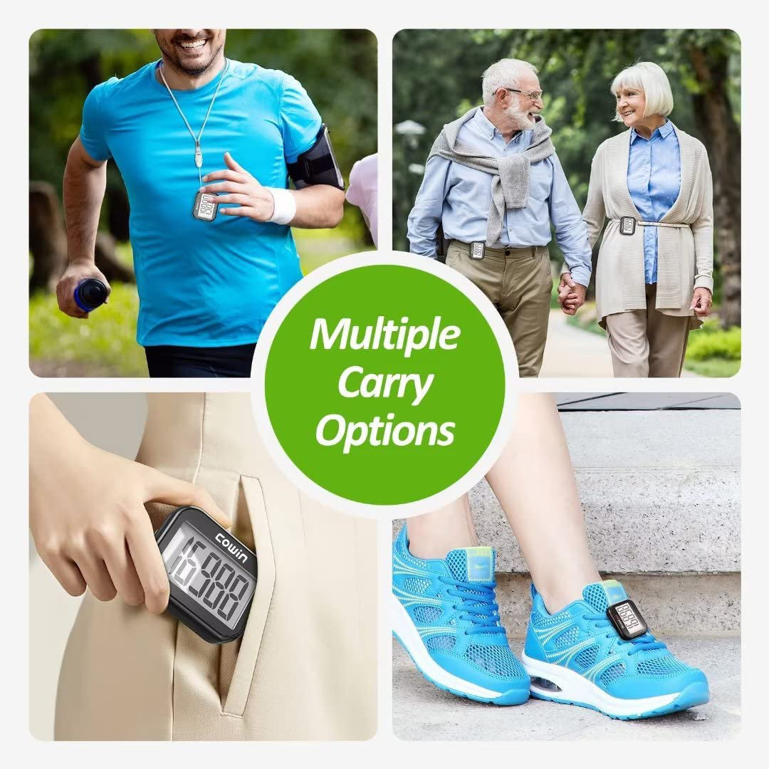 Cowin 3D Pedometer for Walking, Simple Step Counter for Walking with Removable Clip and Lanyard, Accurate Pedometers for Steps, Step Tracker with Large Display for Men Women and Kids