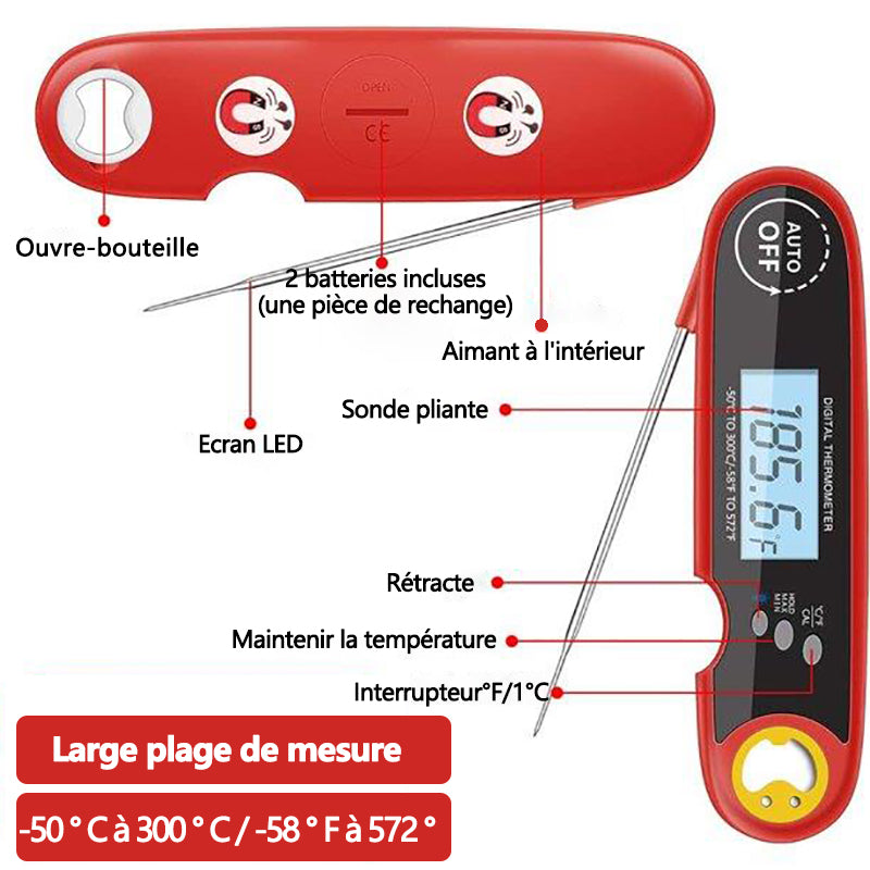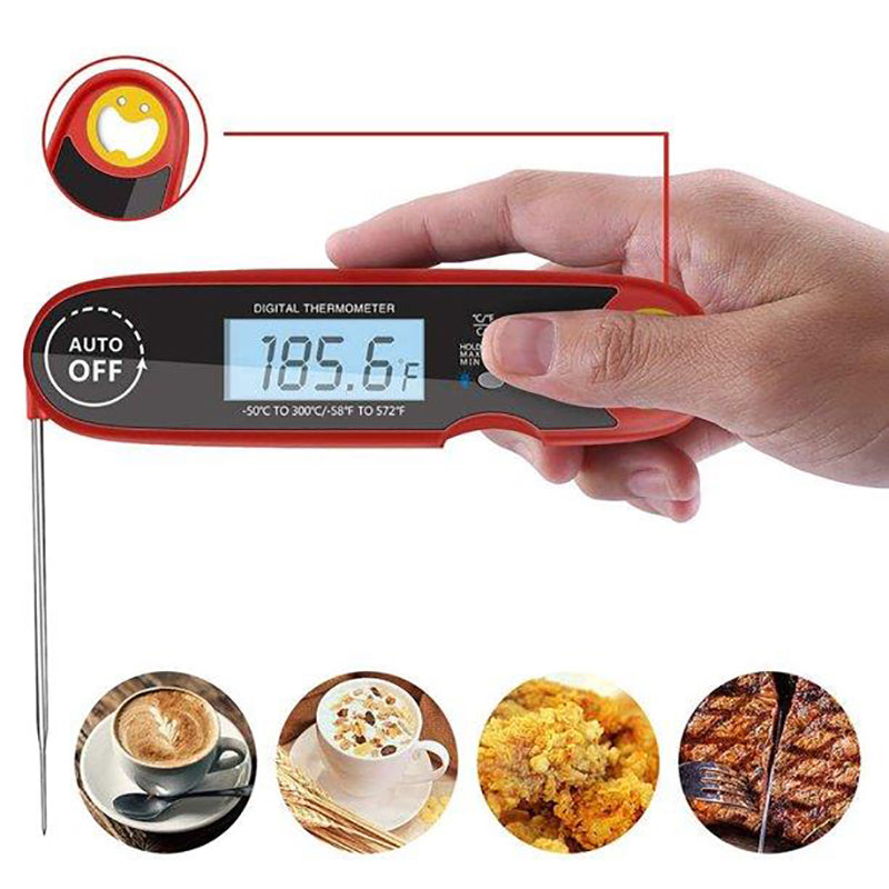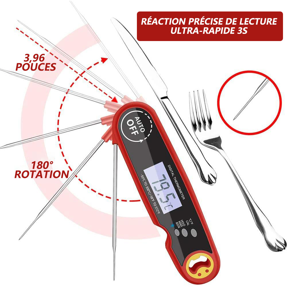 MEIDONG Thermomètre Cuisine Digital - Sonde de Temperature Pliable - Avec Écran LED RétroÉclairage - Thermomètre Cuisson pour Viande